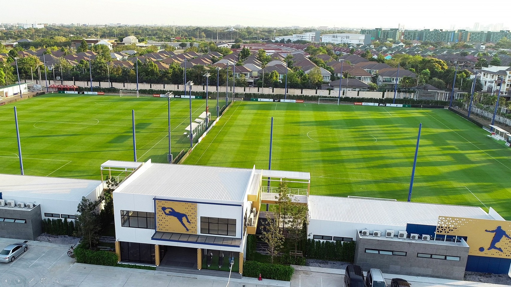Capacité : Le complexe dispose de 2 terrains de football aux dimensions internationales (105m x 68m). Bien qu'il s'agisse d'un centre d'entraînement et non d'un stade de compétition, il peut accueillir des événements privés et des matchs amicaux avec des installations de bord de terrain pour les spe