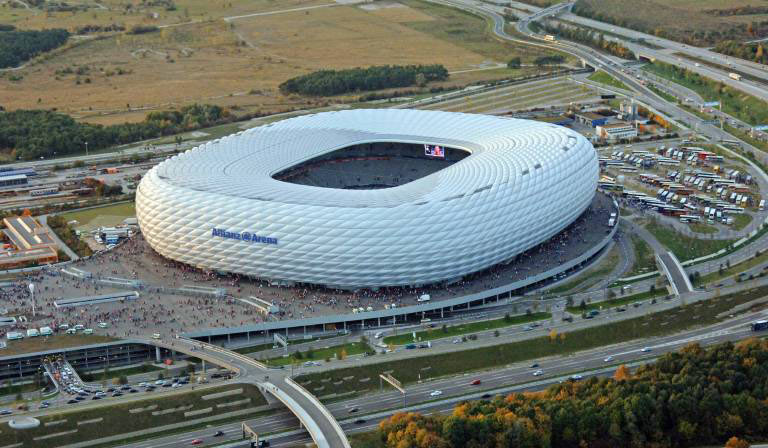 Allianz Arena (German: [aˈli̯ants ʔaˌʁeːna]; known as Munich Football Arena for UEFA competitions) is a football stadium in Munich, Germany, with a 70,000 seating capacity for international matches and 75,000 for domestic matches. Widely known for its exterior of inflated ETFE plastic panels, it is