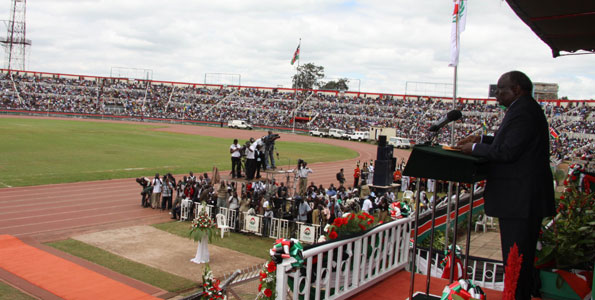 Nyayo National Stadium is a 18,000-seater multipurpose stadium in Nairobi, Kenya.[2] It is located at the square of Mombasa Road, Langata Road, and the Aerodrome Road. It is approximately two kilometers from the City Center, directly opposite Nairobi Mega Mall, formerly known as Nakumatt Mega. It is