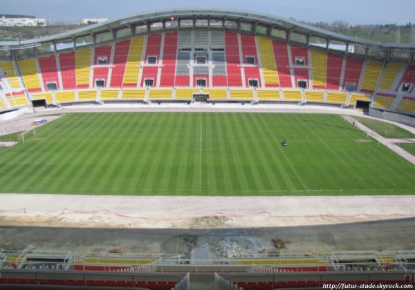 National Arena Toše Proeski (Macedonian: Национална арена „Тоше Проески“) is a sports stadium in Skopje, North Macedonia. It is currently used mostly for football matches, but also for concerts or athletics. It is the home stadium of Vardar and Rabotnichki from Skopje, who compete in the Macedonian